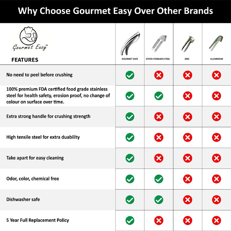 - BUILT TO LAST: 100% Stainless steel garlic press mincer (304) crafted for exceptional durability & performance! We at Gourmet Easy use the highest-grade materials and innovative design to ensure that it will last a lifetime!