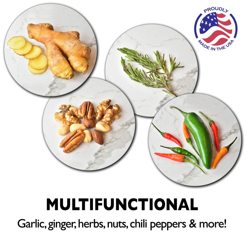 - MULTIFUNCTIONAL Kitchen Tool that can mince all kinds of ingredients, from garlic, to ginger, herbs, nuts and more! NO MORE messy garlic presses, squashing garlic with rockers, or rolling garlic to peel!