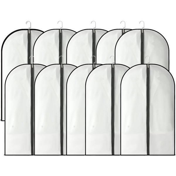 Garment Covers Dustproof Clothes Covers Moth Proof Coat Bag with Zip PEVA Translucent Dress Cover Waterproof Anti-mite Breathable Suit Protector (10 pieces, 60×80)