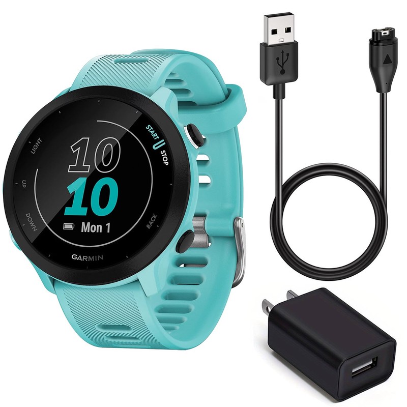 Garmin Forerunner 55 GPS Running Smartwatch (Aqua) Power Bundle