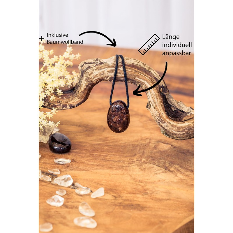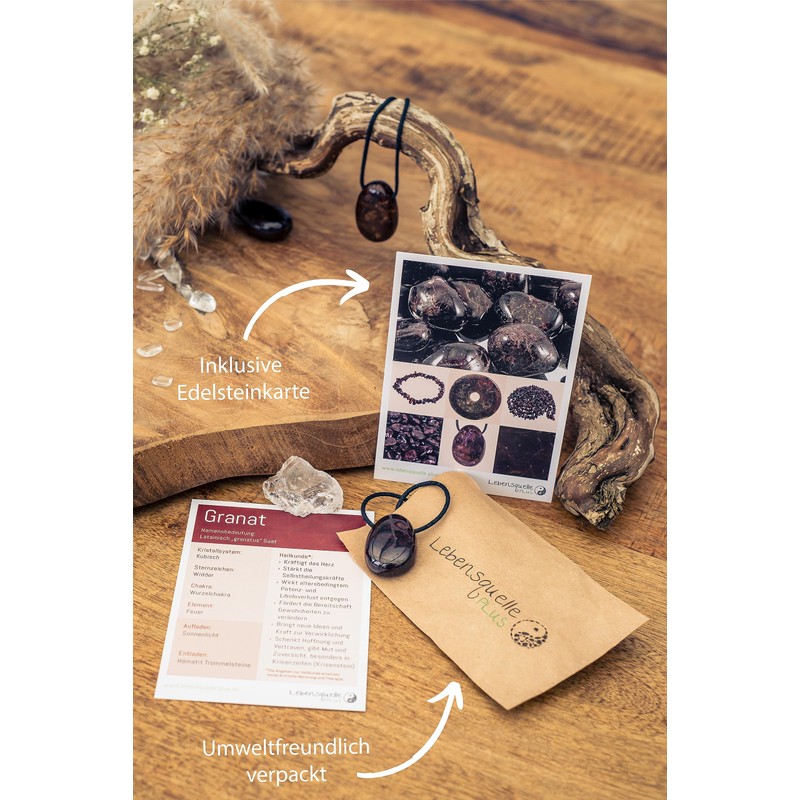 Garnet Drop Pendant Drum Gemstone with Drilled Hole with Leather Strap