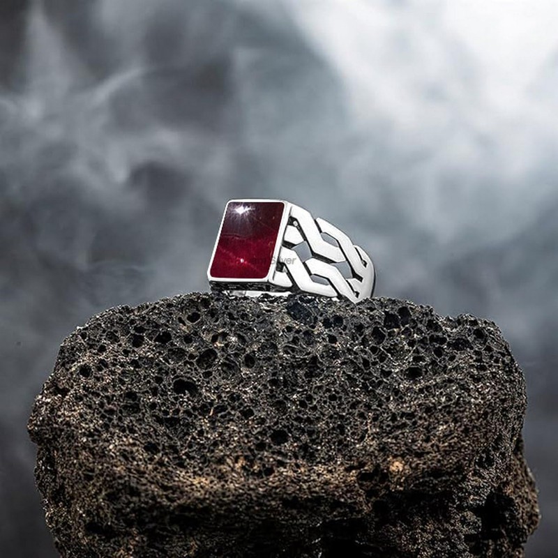 Garnet Solid 925 Sterling Silver Rectangle Shape Gemstone Men Signet Rings, Beautiful Handcrafted Anniversary, Christmas Gift for Fathers, Son, Boyfriend, Friend (US Ring size 10)