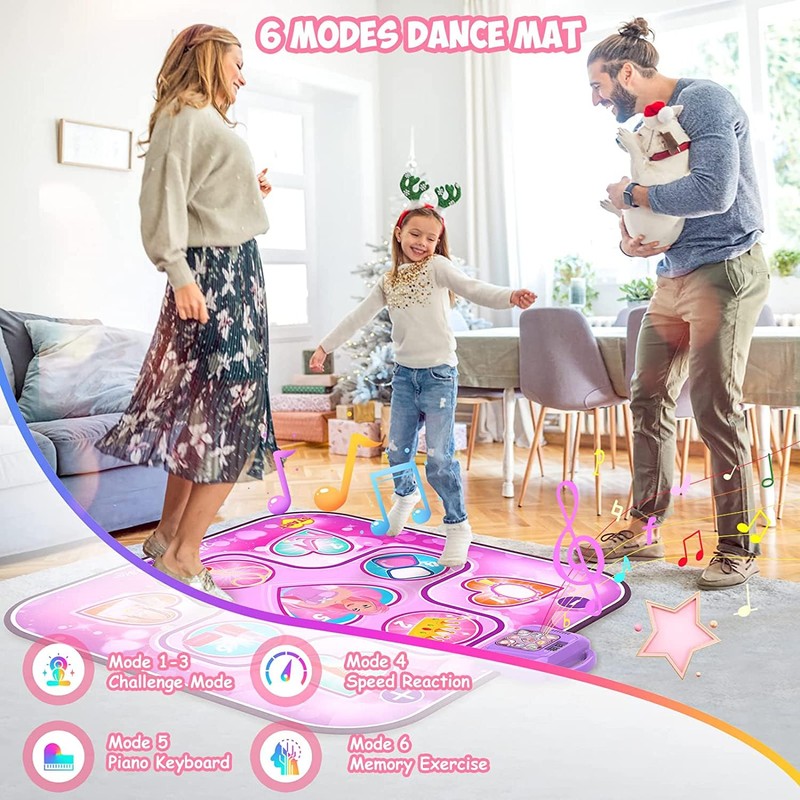 - 🎵【Safe Material Dance Mat】: This music dancing pad is made of safe, high quality, environmental-friendly materials, which has passed ASTM and CPSIA test, safe to play for 3 4 5 6 7 8 9+year old girls boys.