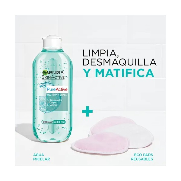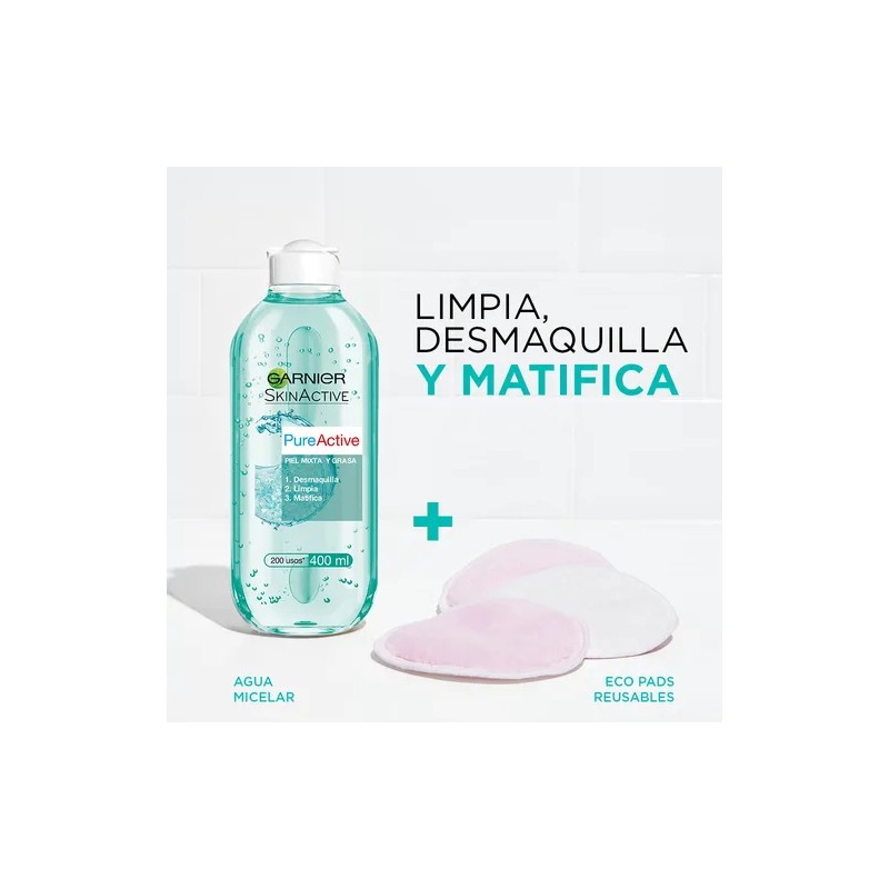 Garnier Agua Micelar Pure Active | Limpieza Profunda + Antiimperfecciones | 400 ml