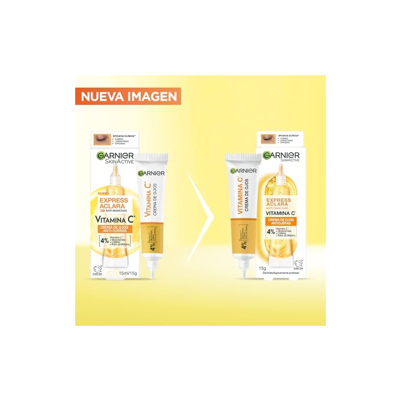 🌟 ⭐ Garnier Express Aclara Crema de Ojos para Reducción Ojeras con Vitamina C + Niacinamida + Cafeína, 15 ml ⭐ 🌟