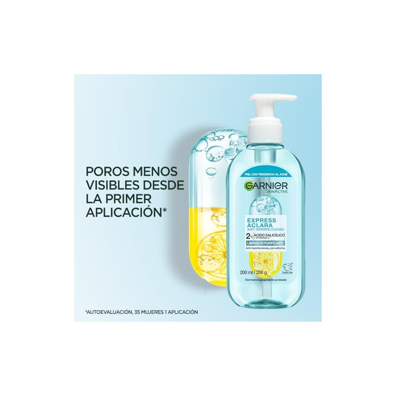 Garnier Express Aclara Gel limpiador facial Anti-imperfecciones Acido Saliclico y Vitamina C, 200ml - Producto Original de Alta Calidad, Entrega Rápid