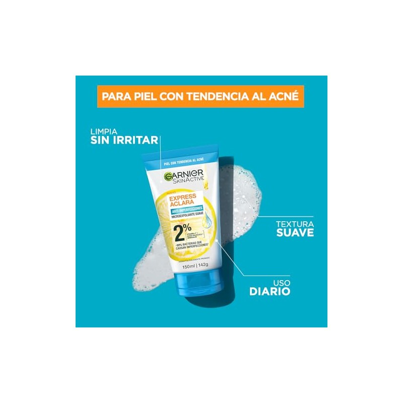 Garnier Express Aclara Limpiador profundo exfoliante Anti-imperfecciones con cido Saliclico y Vitamina C, 150ml. Ideal para piel con tendencia al acn
