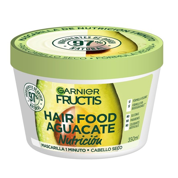 Garnier Fructis Hair Food Aguacate Mascarilla Nutricin para cabello seco, 350 ml. Nutre y repara intensamente hasta las puntas, frmula vegana