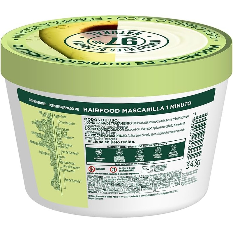 Garnier Fructis Hair Food Aguacate 🥑💚 es la mascarilla nutritiva 3 en 1 que repara y nutre intensamente el cabello seco. 🌿✨ Con 98% ingredientes naturales, fórmula vegana y sin siliconas, deja tu melena suave, brillante y saludable. ¡Dale a tu cabello el alimento que necesita! 💆♀️🔥