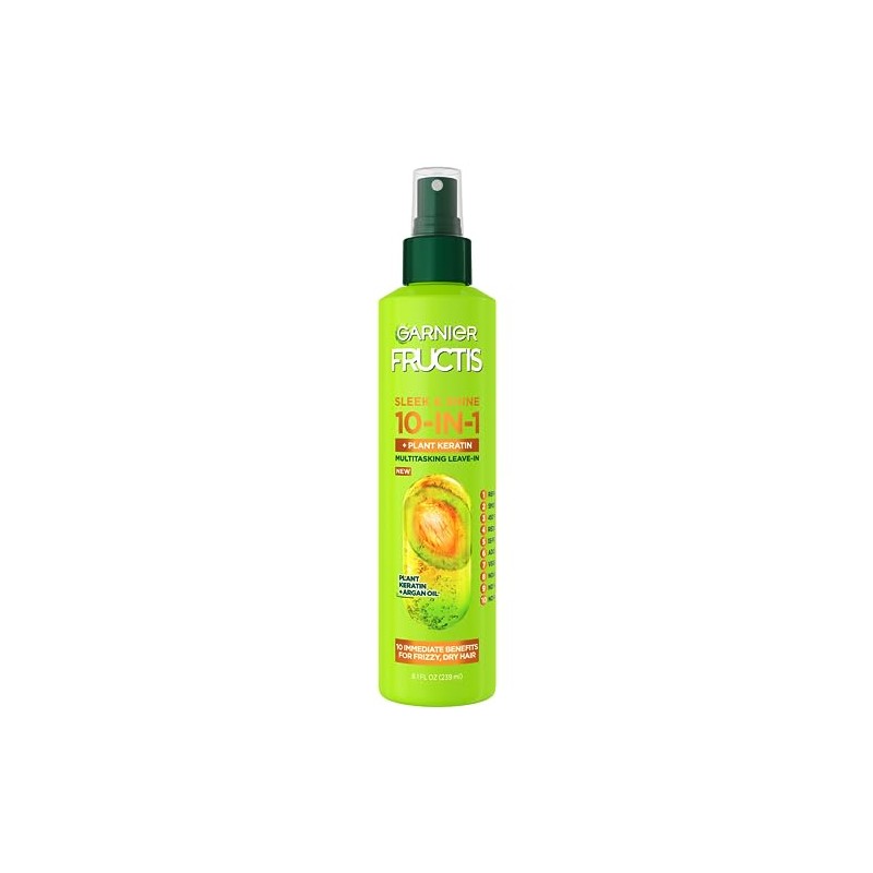 Garnier Garnier Fructis Sleek & Shine 10-in-1 for Frizzy, Dry Hair, Plant Keratin, 8.1 Fl Oz, 1 Count (Packaging May Vary)
