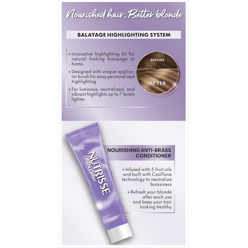 - Nutrisse Ultra Color BY1 Ultra Balayage (Icing Swirl) Permanent Hair Dye: Our special highlighting kit that can be used for an at home balayage treatment. This permanent hair color adapts to all hair textures for long lasting bold color