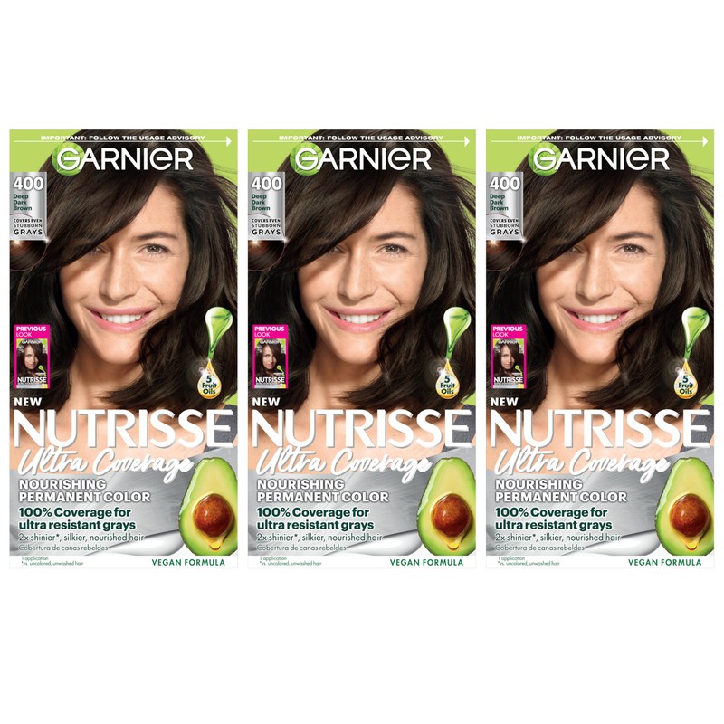Garnier Hair Color Nutrisse Ultra Coverage Nourishing Creme, 400 Deep Dark Brown (Sweet Pecan) Permanent Hair Dye, 3 Count (Packaging May Vary)