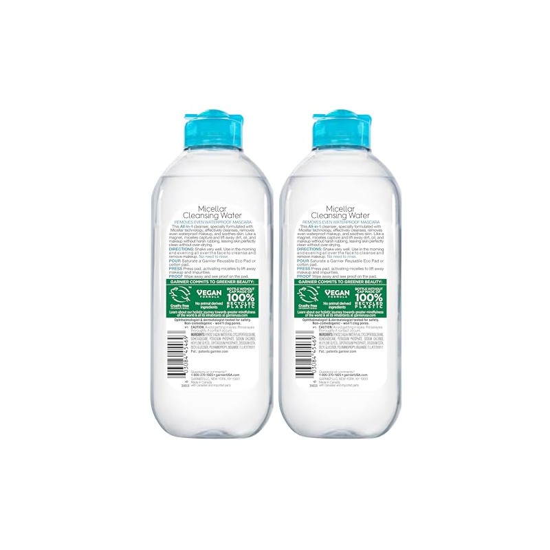 Garnier Garnier Micellar Water for Waterproof Makeup, Hydrating Facial Cleanser & Makeup Remover, Suitable for Sensitive Skin, Vegan, Cruelty Free, 13.5 Fl Oz (400mL), 2 Count