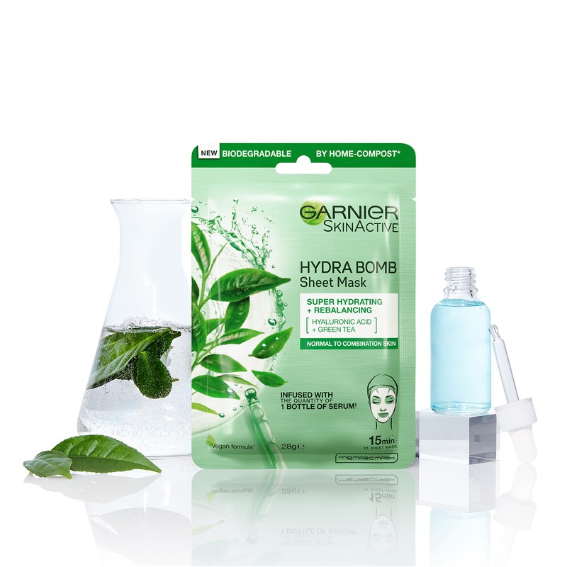 Garnier Hydra Bomb Hyaluronic Acid Green Tea Sheet Mask (3 Pack)