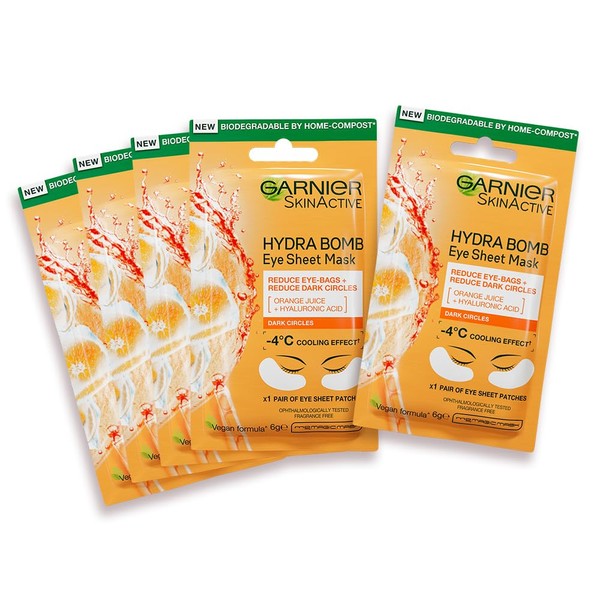 Garnier Hydra Bomb Hyaluronic Acid Orange Extract Brightening Eye Sheet Mask (5 Pack)