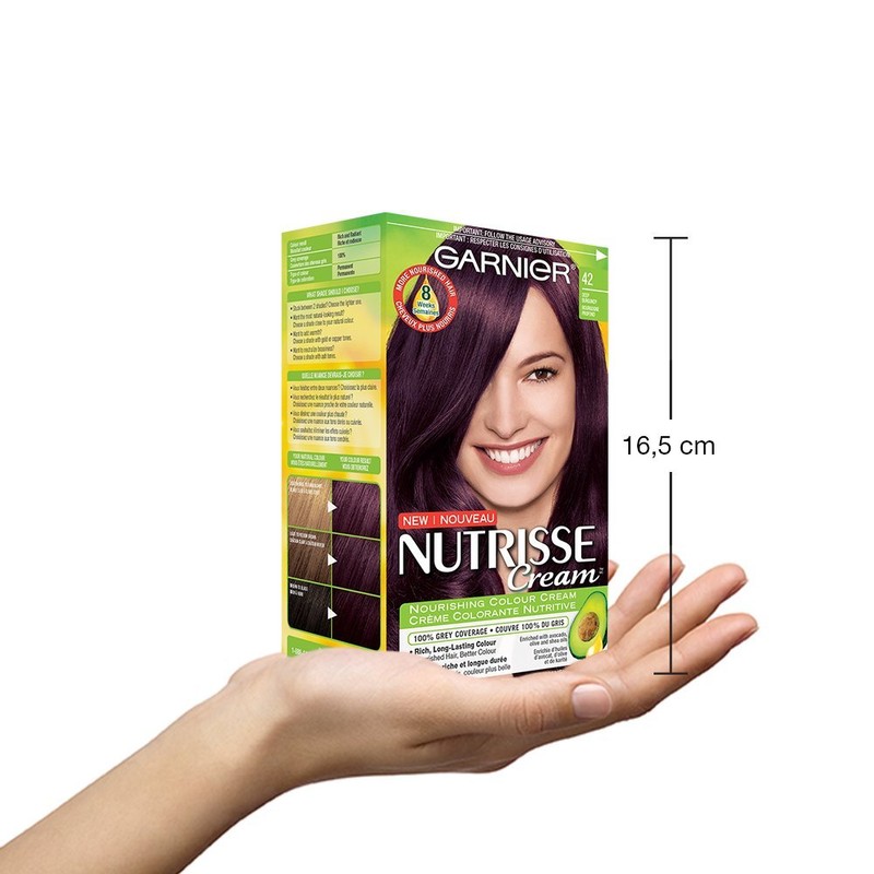 Garnier Nutrisse Cream, Permanent Hair Colour, 42 Deep Burgundy, 100% Grey Coverage, Nourished Hair Enriched With Avocado Oil, 1 Application