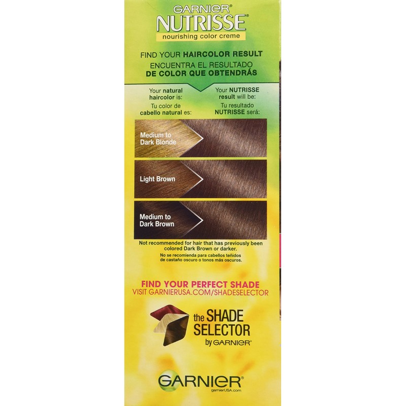 - NOURISHING HAIR COLOR: Discover the #1 Nourishing Color Creme. Nutrisse Color is formulated with color boost technology & a blend of triple fruit oils--avocado, olive & shea--to deliver permanent hair color, even to dark hair.