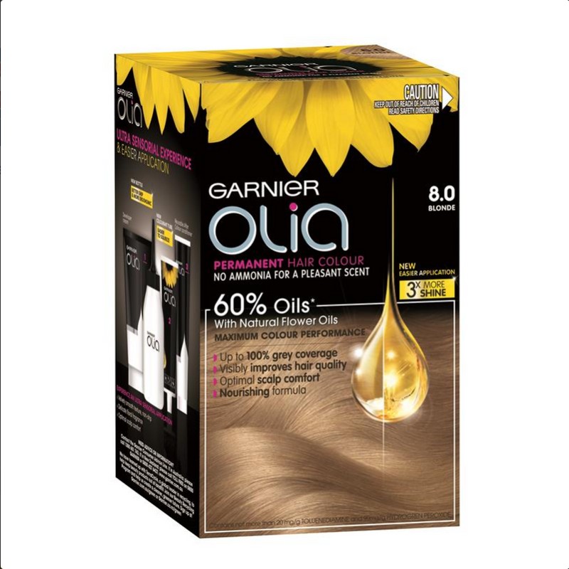 Oil-powered hair colour with no ammonia. The 1st permanent home hair colour powered by oil, not ammonia, to reduce damage. Olia's Oil Delivery System Technology uses oils to propel the colour deep into the hair fibre to give you maximum colour performance and visibly improve hair quality. Hair is 35% smoother with 3x more shine*.*Instrumental tests, vs before colouration.