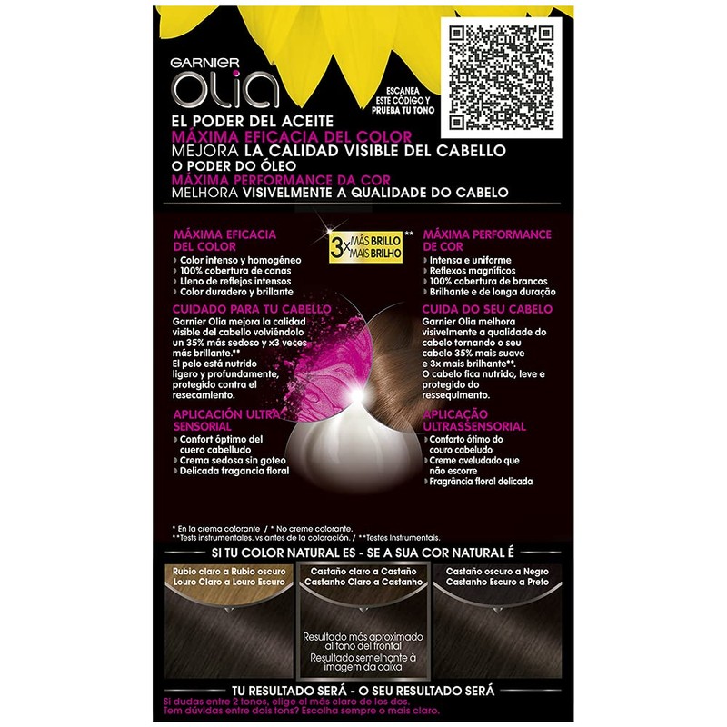 Garnier Olia Coloración Permanent Con Aceites Florales De Origen Natural Sin Amoniaco Para Un Olor Agradable - Castaño Oscuro 3.0
