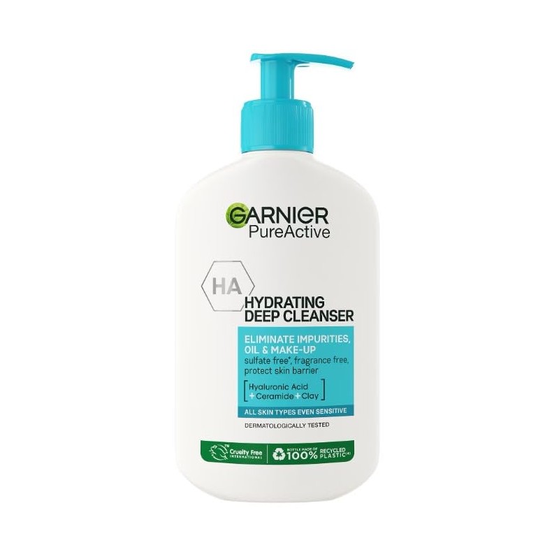 Garnier Pure Active Facial Cleansing, Removes Impurities, Oil and Make-up, with Hyaluronic Acid, Ceramide and Clay, Hydrating Deep Cleanser, 1 x 250 ml