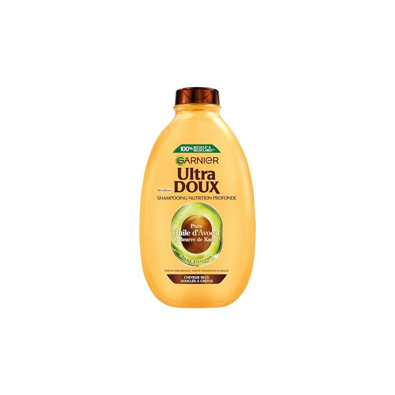 - Garnier Ultra-soft nourishing shampoo with avocado oil and shea butter for dry to very dry, curly to curly hair.