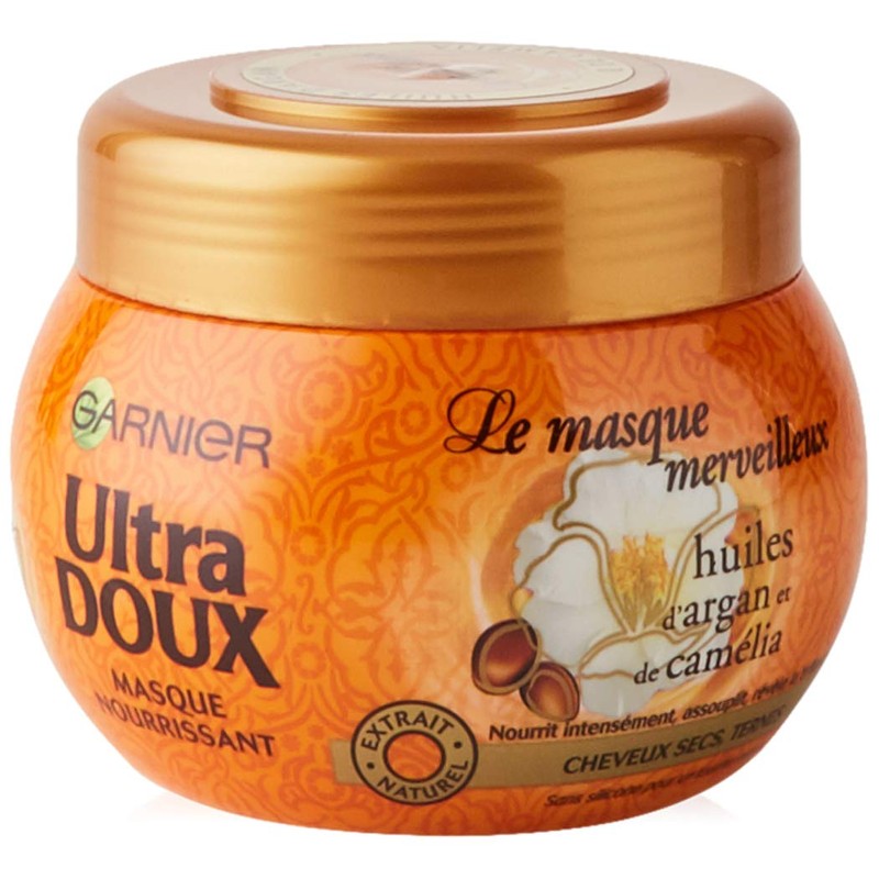 - In its new care formula for dry hair, Garnier Ultra Doux combines 2 valuable oils with wonderful properties. Inherit the beauty secrets of Moroccan women, argan oil with very nourishing properties, blends with camellia oil known to add shine and softness to your hair