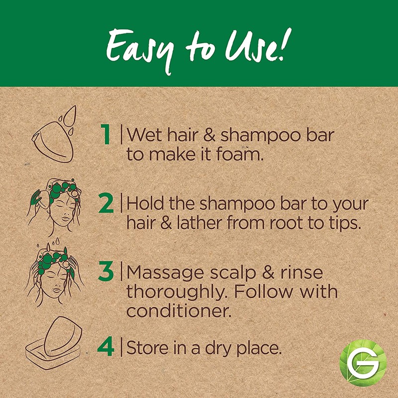 - How To- 1 Wet your hair and the solid shampoo to make it foam- 2 Hold the shampoo bar to your hair and lather from roots to tips- 3 Massage scalp and rinse off, Follow with conditioner- 4 Store in a dry place