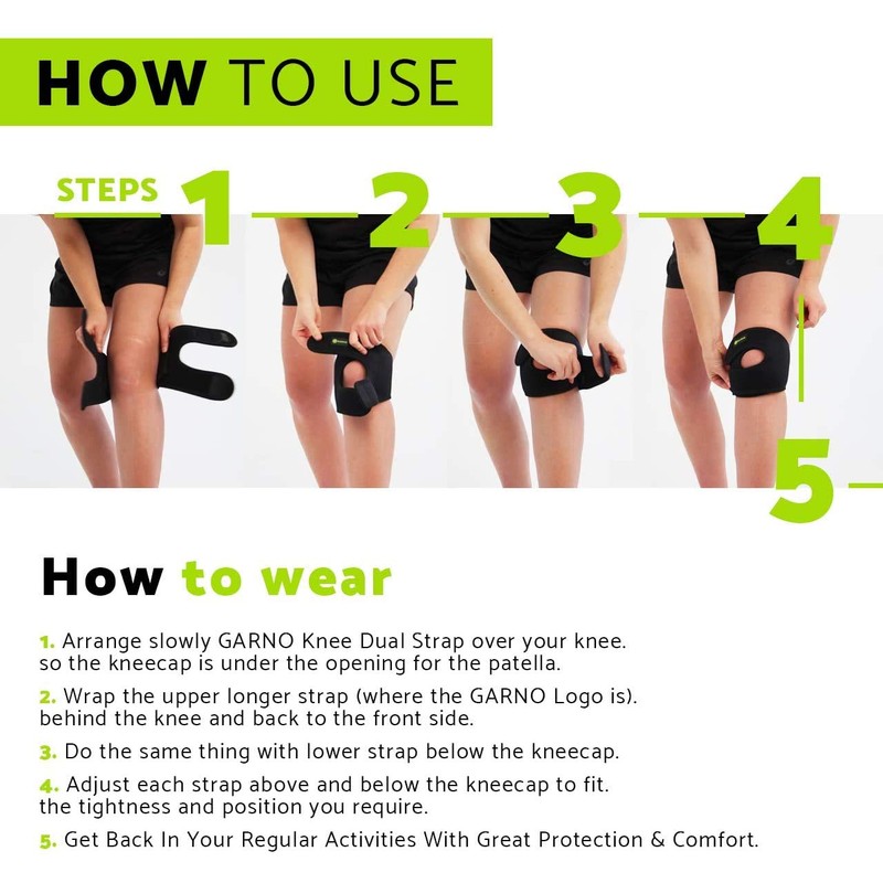 GARNO Knee Brace for Pain Relief by Meniscus Tear, MCL, Arthritis, ACL, Osgood Schlatter, Compression Patellar Tendon Support Strap for Working Out, Running, Weightlifting; Men, Women; (Large Size)