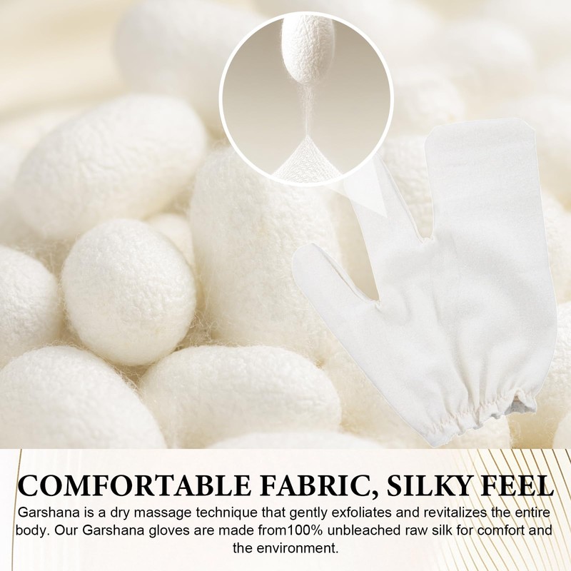 - Full Body Care: Garshana gloves raw silk massage gloves are an essential tool for daily effective dry brushing and is suitable for care of all parts of the body. Whether it is arms, legs, back or abdomen, you can easily massage. Raw silk gloves dry brushing is a versatile solution for anyone seeking natural skin care and refreshing massage.