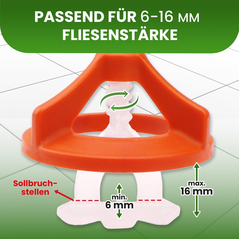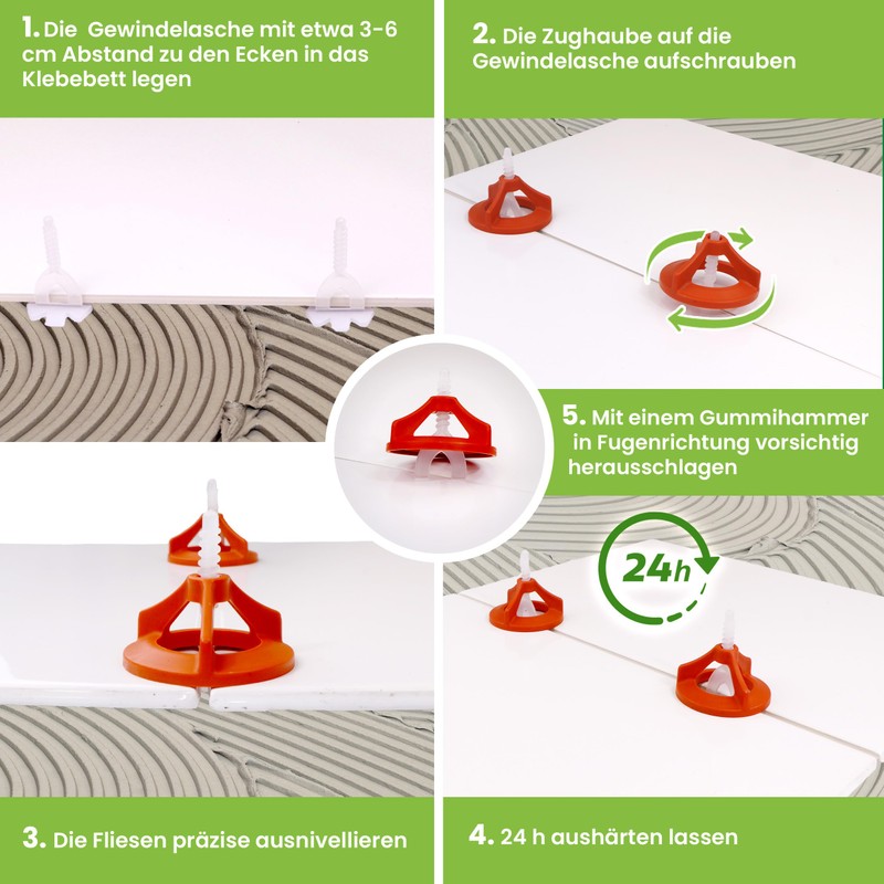 - Easy removal thanks to predetermined breaking points - After drying the tile adhesive, the threaded pockets can be easily kicked off or knocked off thanks to the predetermined breaking points.