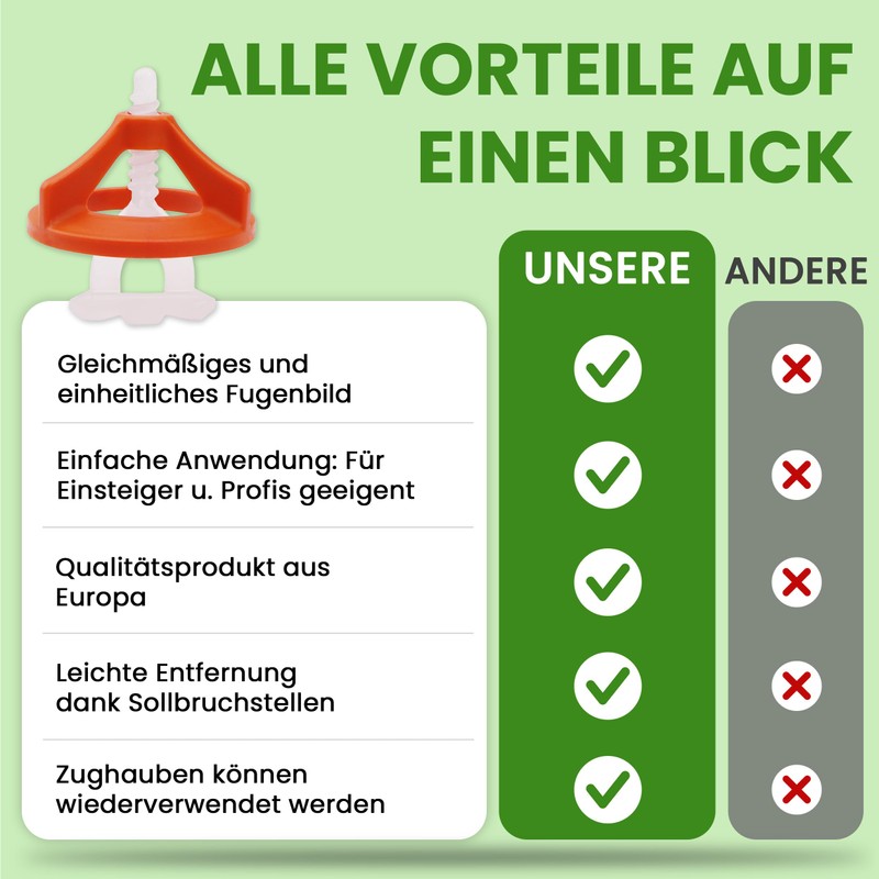 - Easy to use: they are simply placed under the tiles and tighten the pull hoods for perfect alignment.