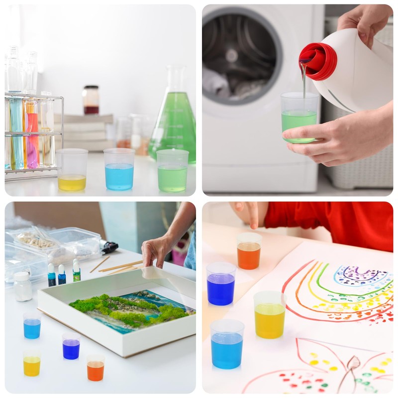 - Multi-use - The clear epoxy mixing cups with stirring sticks are perfect for handmade craft making, scientific experiments, painting, cosmetic making, etc. It is the perfect tool for measuring and mixing resins, epoxy, stain, paints, dispensing liquids, powders, etc.