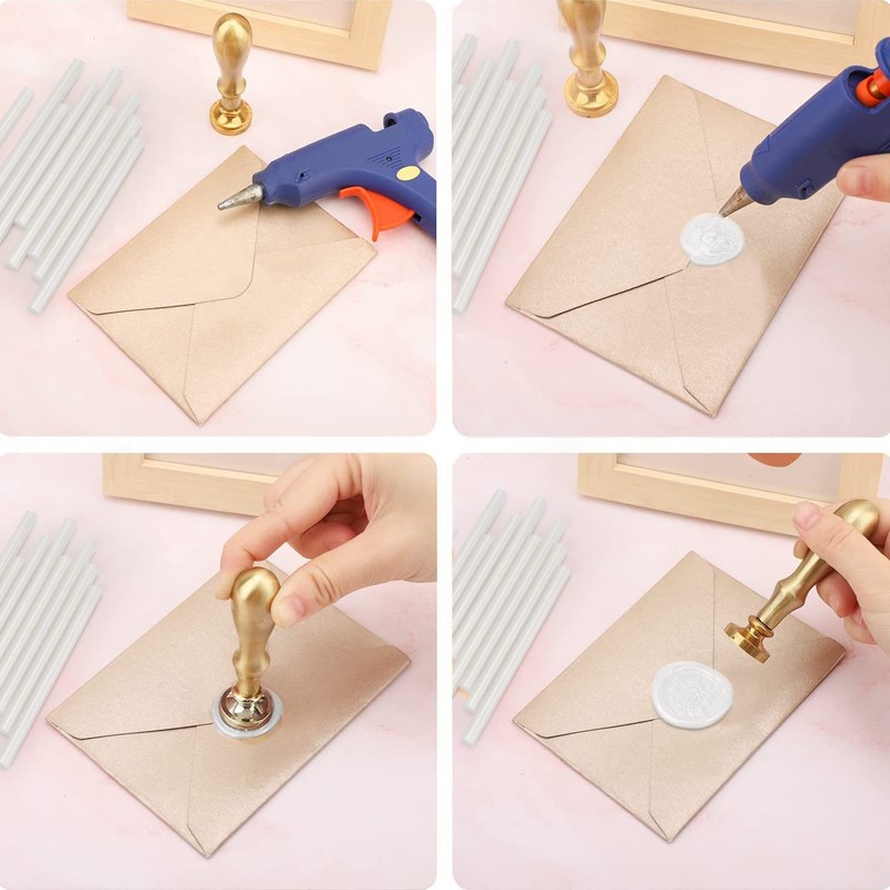 - EASY TO USE - There are 3 ways to melt sealing wax sticks, mini glue gun, wax melting spoon, wax furnace. Then pour the melted wax liquid on the stamp place you need (if there are air bubbles, you can use a toothpick to stir to eliminate air bubbles). Check that your stamp is oriented correctly. Lastly push the stamp into the pool of wax and wait for reveal.