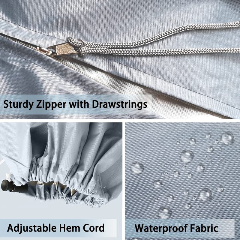 - [Easy to Use] With a zippered closure, an adjustable drawstring, and an attached installation rod, you just need to use the rod to lift up the cover and slide down the zipper even if the umbrella is too tall for you.