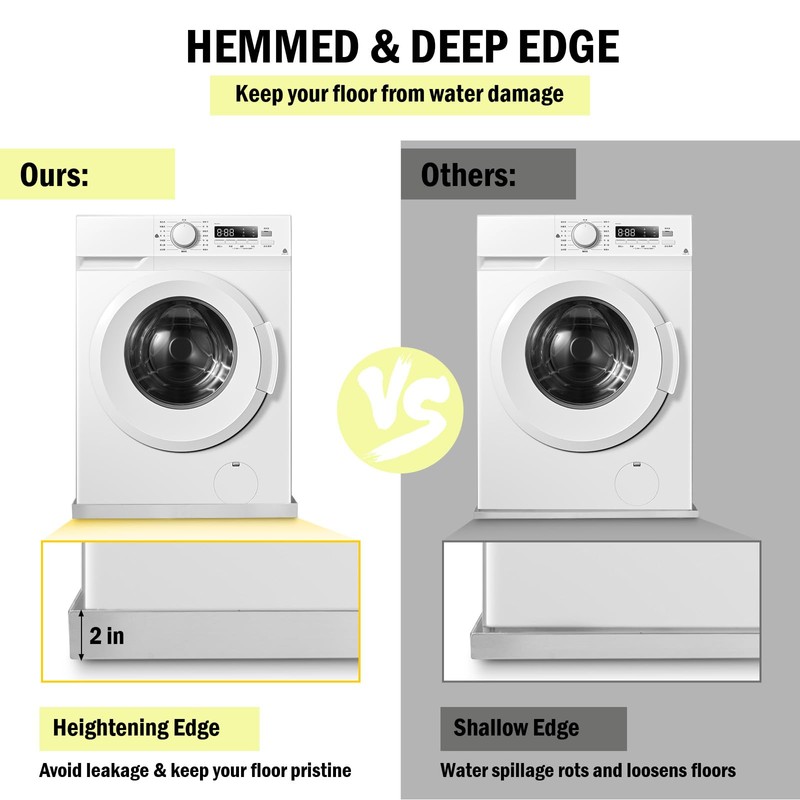 - Built to Last: Maintain a clean and keep laundry room clean and dry with our robust washing machine drip pan. Our heavy-duty drip tray is engineered to capture water leaks and prevent floor damage. Constructed from premium-grade stainless steel, this drip pan is not only sturdy enough to support the weight of your washing machine but also easy to maintain.