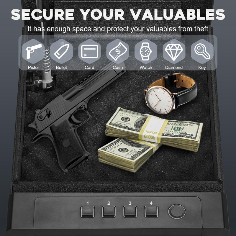 - High-strength Construction: Crafted from alloy steel high-strength materials with anti-prying features, our gun safe boxes ensure reliable protection against theft and tampering.