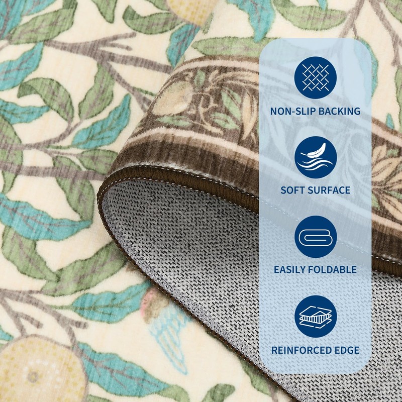 • Botanical Elegance Rug: Adorned with delicate fruit&leaf motifs, this 8x10 rug brings the serene beauty of nature into your home. Its intricate botanical design effortlessly elevates any space—whether classic vintage, relaxed boho, cozy farmhouse, or sleek modern decor. Built for both style and endurance, it thrives in high-traffic areas like living rooms, dining spaces (ideal under tables), bedrooms, entryways, offices, or playrooms