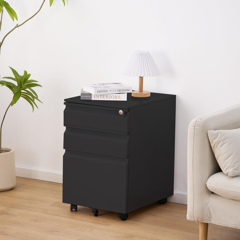 GarveeHome Filing Cabinets, 3 Drawer Mobile File Cabinet with Lock & Anti-Tip Wheel,Under Desk Metal Filing Cabinets for Home Office Organizer Letters/Legal/A4 (Un-Assembled) (Black-1)
