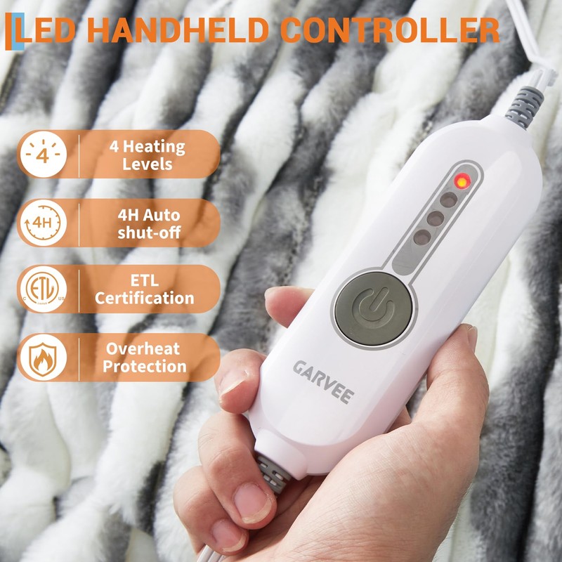GarveeHome Heated Throw Blanket 50"x60", Cozy Faux Rabbit Fur Electric Blanket with 4 Heating Levels & 4 Hours Auto Off, Over-Heat Protection, Machine Washable, ETL & FCC Certification, Marble Gary