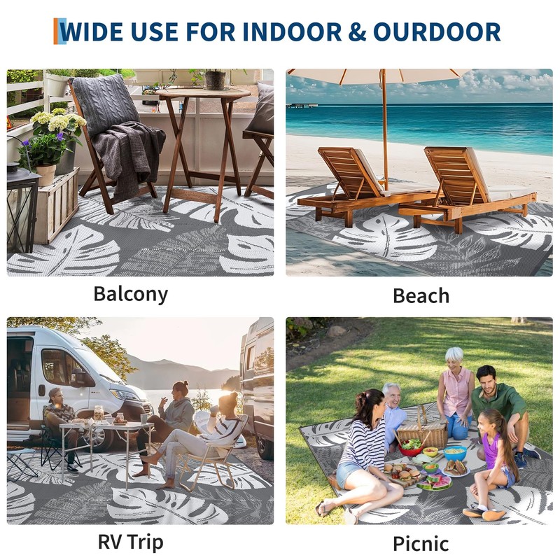 - 【Versatile Usage】 Elevate your outdoor or indoor decor with a pop of color using this weather-resistant plastic outdoor rug suitable for various settings such as patios, campers, RV road trips, picnics, trailers, balconies, beaches, gardens, and more. Choose from multiple sizes to suit your space
