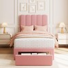 GarveeHome Twin Bed Frame with Under-Bed Drawer, Upholstered Platform Bed with Wave Headboard for Kids/Girls, Wooden Slats Support, No Box Spring Needed, Boucle Pink