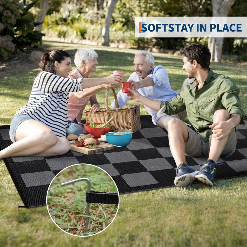 - Portable and Safe: This lightweight camping rug includes a convenient carry bag and can fold into a compact size for easy transport to the beach, park, or camping, featuring four corner loops with stakes to keep it secure on windy days