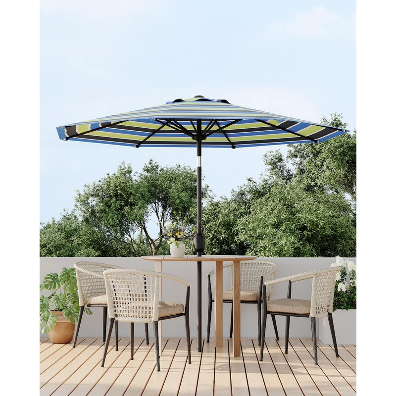 GarveeLife 9FT Outdoor Patio Umbrella, Outdoor Table Umbrella, Market Umbrella with Push Button Tilt and Crank, 8 Sturdy Ribs UV Protection Waterproof for Garden, Deck, Pool (Yellow-Blue-Purple Striped)
