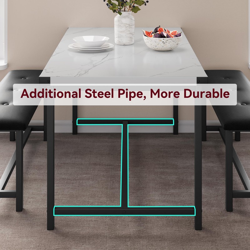 - Sturdy Construction:this white kitchen table set features a sturdy metal frame, ensuring exceptional stability and a longer service life. The tabletop is crafted from premium thickened MDF board, significantly enhancing its overall durability. The H-shaped base design adds extra strength, making both the dining table and bench more robust and long-lasting. The bench alone can support a load-bearing capacity of up to 400 lbs.