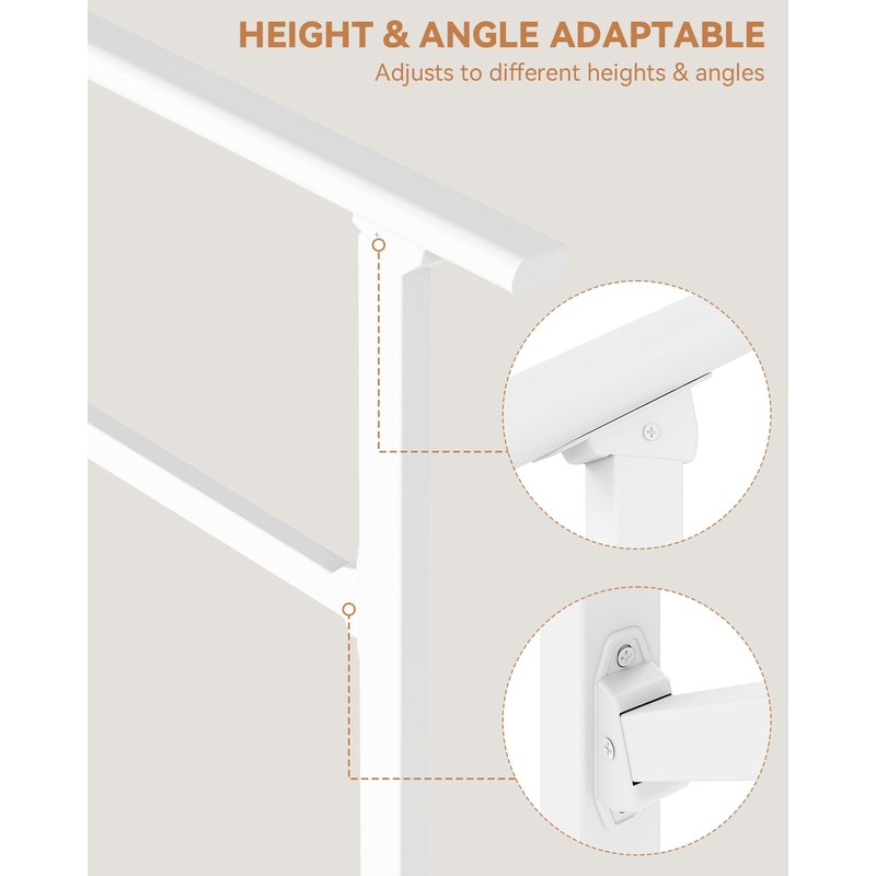 - FLEXIBLE HEIGHT & ANGLE: Our handrails for outdoor steps feature an adjustable height and angle, making them perfect for a variety of step heights and outdoor stair configurations.