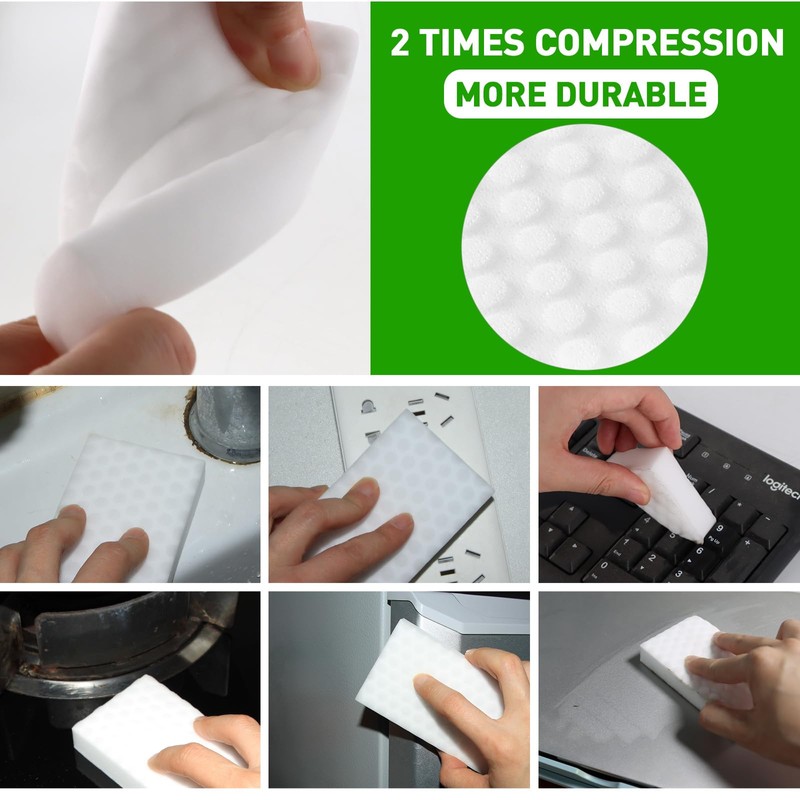 - Longer Lasting Melamine Sponge: Our high-quality melamine sponge is made from dense, tough melamine foam, providing long-lasting cleaning power. Unidirectional friction helps extend the sponge's lifespan, ensuring it remains effective over time.