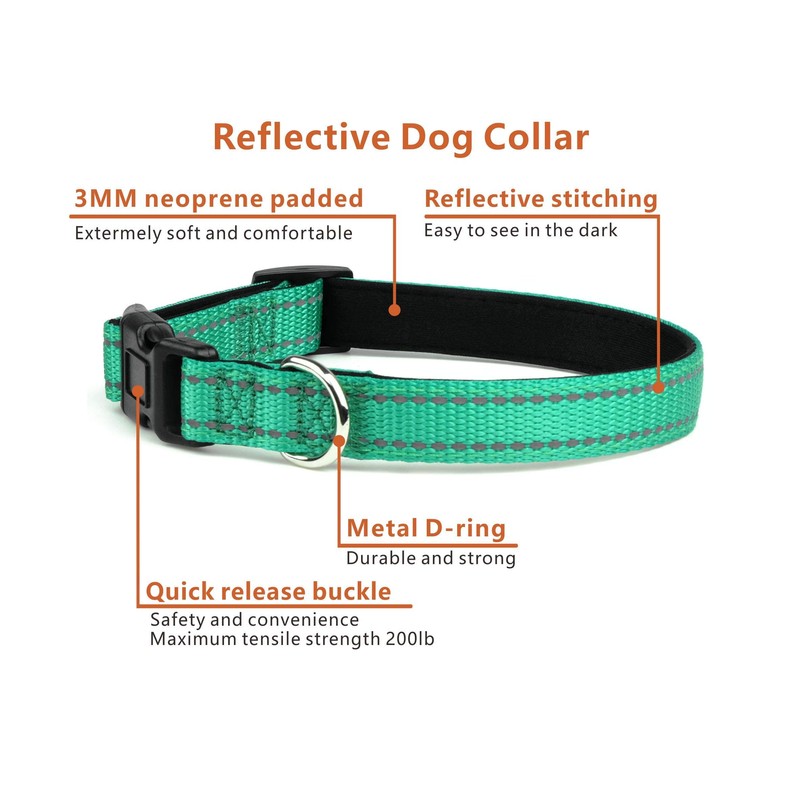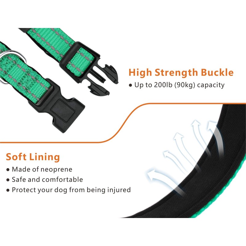 Garwor Reflective Dog Collar with Soft Neoprene Padding, Buckle Adjustable Safety Nylon Pet Collars for Small Dogs, Lightweight, Breathable, Comfort Fit(S, Turquoise)