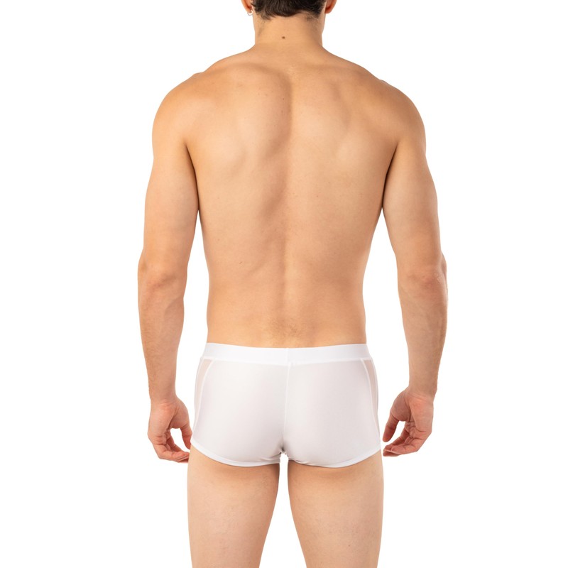 Gary Majdell Sport Men's Boxer Brief Swimsuit with Front and Side Mesh Inserts - Available in Shiny Solid Tricot and Nylon Spandex Prints (White, L)