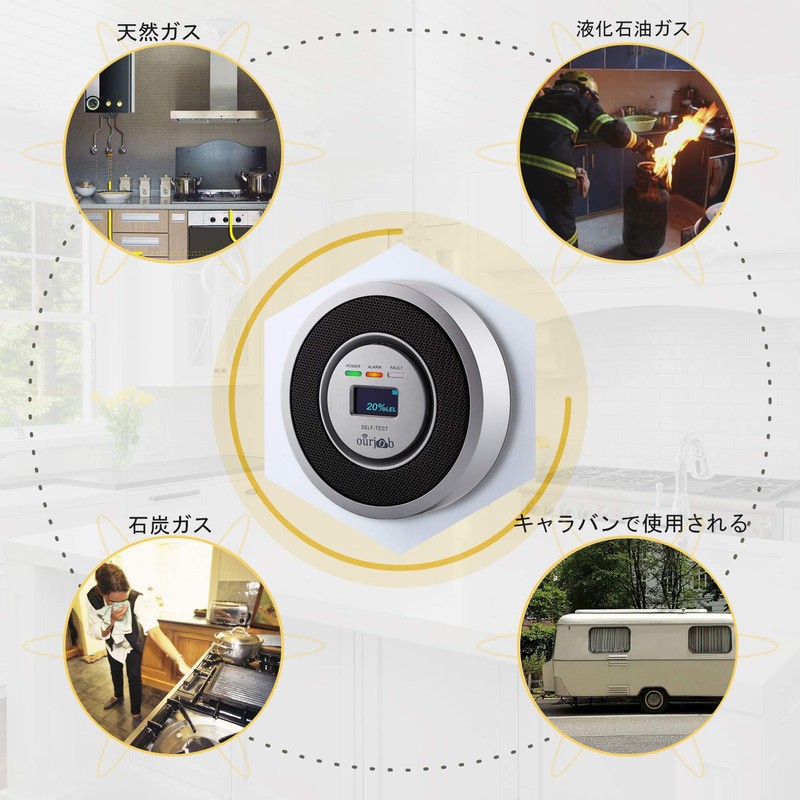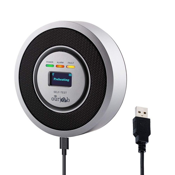 Gas Alarm - Ourjob, Household Gas Alarm, LPG/Natural/Coal Gas Flammable Gas Leak Alarm, Propane Butane Methane Gas Sensor, USB Powered, Digital Display, Sound Light Alarm, Hazard Proof Gas Detector (Silver)