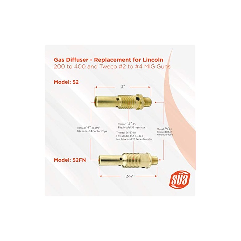 - These Diffusers thread with Series 14 Contact Tips and 62A Conductor Tubes.